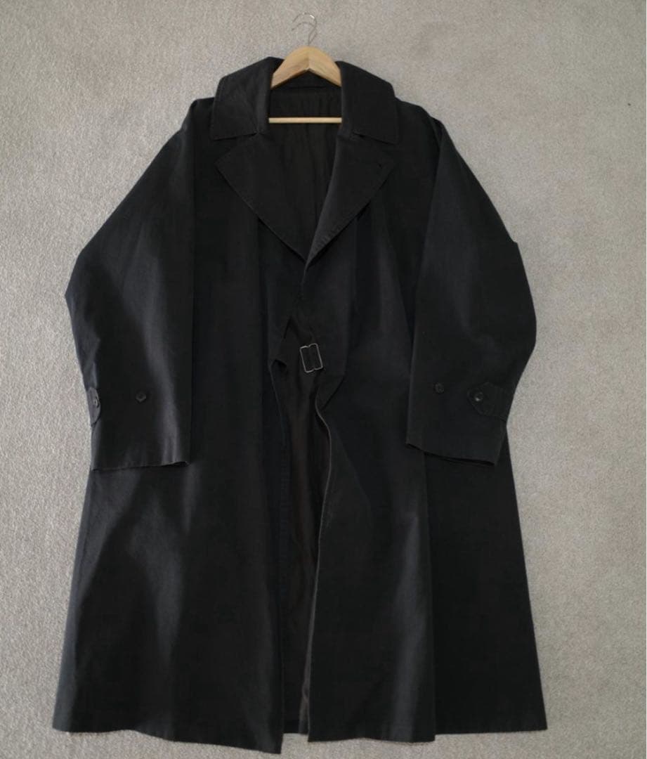 cantate/カンタータTrench Coat/トレンチコート■型番:18SSCA084■定価:158.000円+税■サイズ:48・着丈(後ろ襟ぐり中心から裾まで) 約106cm・身幅(第一ボタンの位置で) 約55.5cm・裄丈(襟つけ根中央〜肩線を通って袖口まで) 約85.5cm※平置き素人採寸となります。誤差はご容赦ください。■素材・表地:Cotton100%・ライナー:Cupro50% Cotton50%・バックル:Cowhide■カラー:ベージュ■その他・商品名はトレンチコートですが、タイロッケンコートとも言える形です。・購入後、数回着用しましたが、サイズが合わないため暗所でコートハンガーにかけて大切に保管しておりました。・スチームをあて陰干し、を年に一度、行っていました。・ベルト有り、取り外し可能です。・喫煙者ではなく、ペットもおりません。以下、Lookbookの内容を記します。〜〜〜トレンチコートの素材の醍醐味は“玉虫”の色合いになります。今回は、スーピマコットンの60番双糸を使い、経糸をベージュに、オレンジがかったベージュを緯糸にし、高密度で織ることで、独自の玉虫色を出しました。後加工で撥水機能も付加しました。ベルトの革バックルも特注品です。定番ベルトであるRibbon Knot Belt に使われるプルアップレザーを薄く梳き、味が出るような革バックルにしました。しかもそのバックルを3つ付け、後ろでも長さが調整できるようなベルトを考えたのです。コートのデザインは肩のエポレットを省いてシンプルに。肩はラグランショルダーにしました。襟裏のジグザグステッチも限りなく細かく。通常のステッチの間にもう一回ステッチを入れ、襟を立てて着たくなるような仕様にしました。シルエットはやや大きめのAラインです。ジャストフィットよりも少し大きめできていただければと思います。〜〜〜また、型番検索すると見つかるSilver and GoldさんのBlogで、着用時の写真などが掲載されています。ご参考までに。肩幅/身幅/袖丈/着丈身幅···55cm着丈···106cm